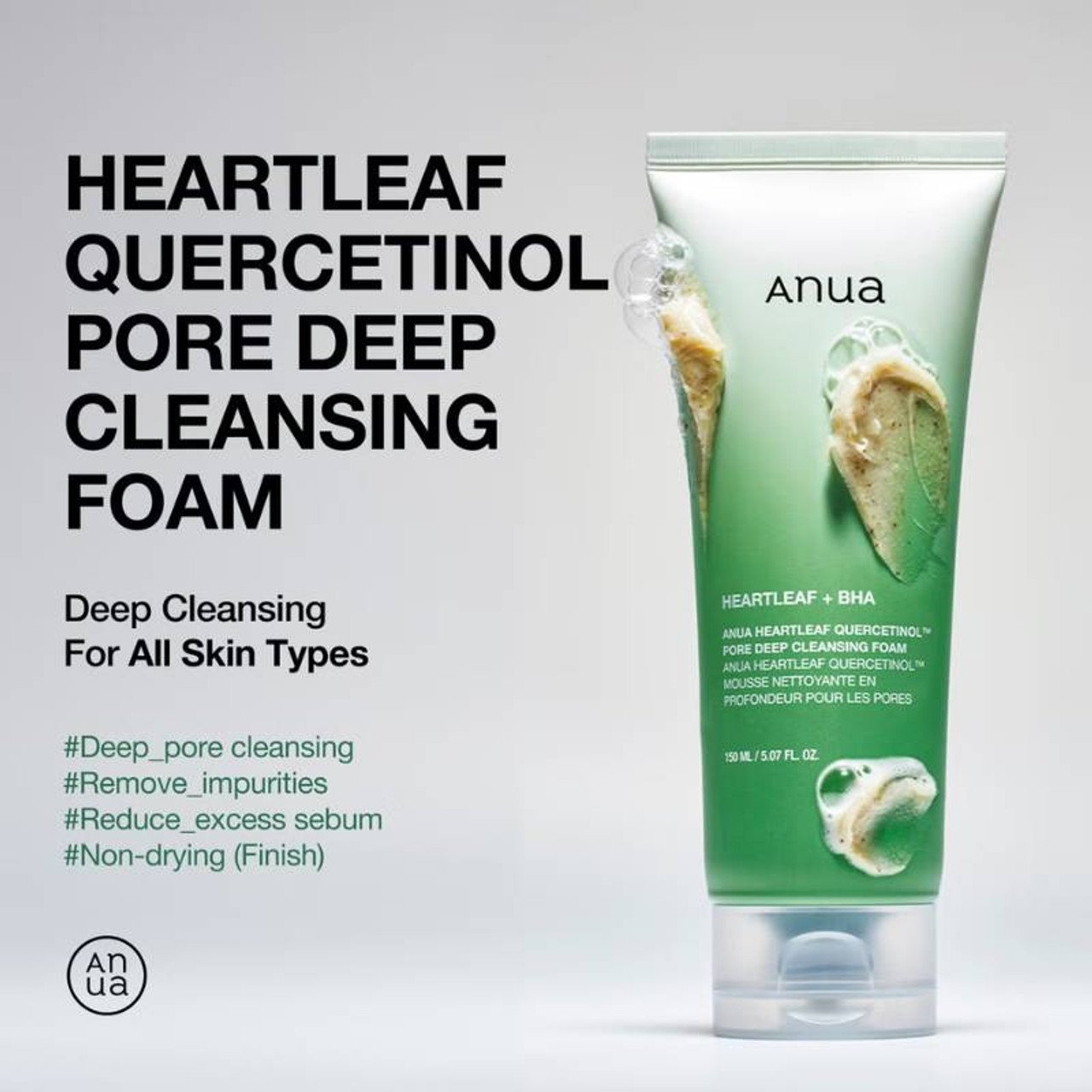 Le nettoyant doux ANUA élimine les résidus restants et purifie la peau tout en respectant sa barrière naturelle.